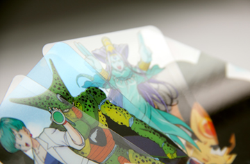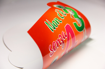 Stampa in pantoni e colore trasparente su PVC, con fustellatura -