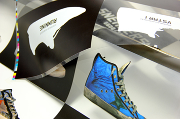 E’ possibile stampare su materiali plastici diversi (PVC, PPL, PET), bianchi o trasparenti, con spessori che variano da 0,10 a 1,2 micron. Vengono applicate le tradizionali lavorazioni offset, ma anche tecniche particolari come drip off o verniciature speciali. I supporti adesivi prevedono la possibilità di fustellatura a mezzo taglio realizzata in linea. La stampa con lastre polimere, inoltre, offre la possibilità di stampare in linea uno strato di bianco coprente, ideale per vetrofanie bifacciali che non lasciano trasparire il colore da un lato all’altro.