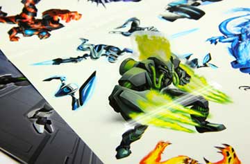 Quadricromia e bianco coprente su PVC con disegni olografici -