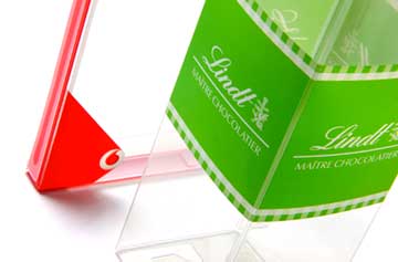 Quadricromia e bianco coprente su PET trasparente, con fustellatura -